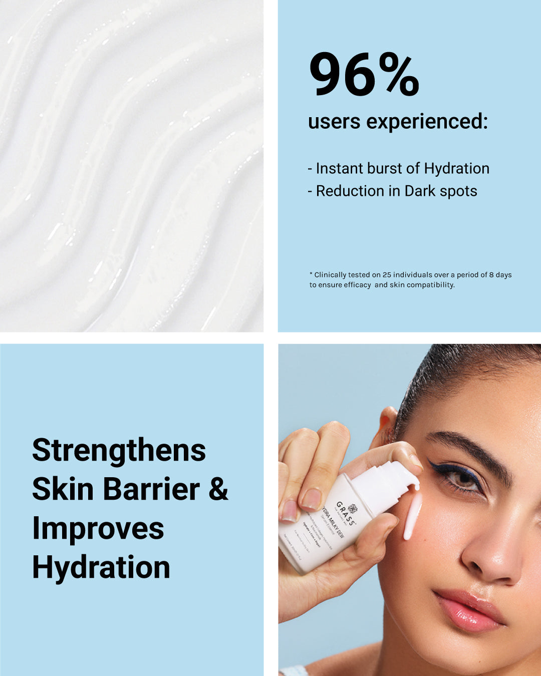 Hydra Milky Dew Serum Essence is derma-tested to deeply hydrate, refine skin texture, and strengthen the skin barrier, leaving your skin smooth, plump, and with an aqua-skin glow.