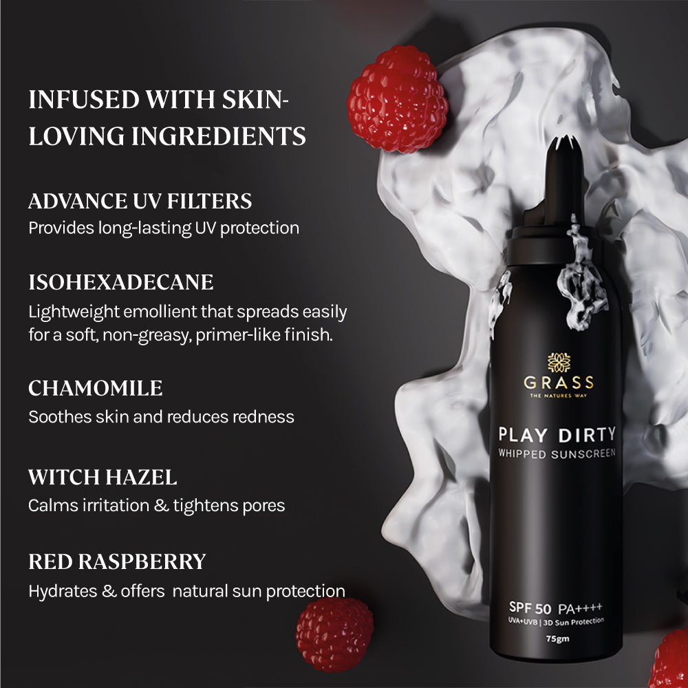 Introducing Play Dirty- India’s first makeup-friendly whipped sunscreen with SPF 50+, PA++++ and advanced 3D Sun Protection.