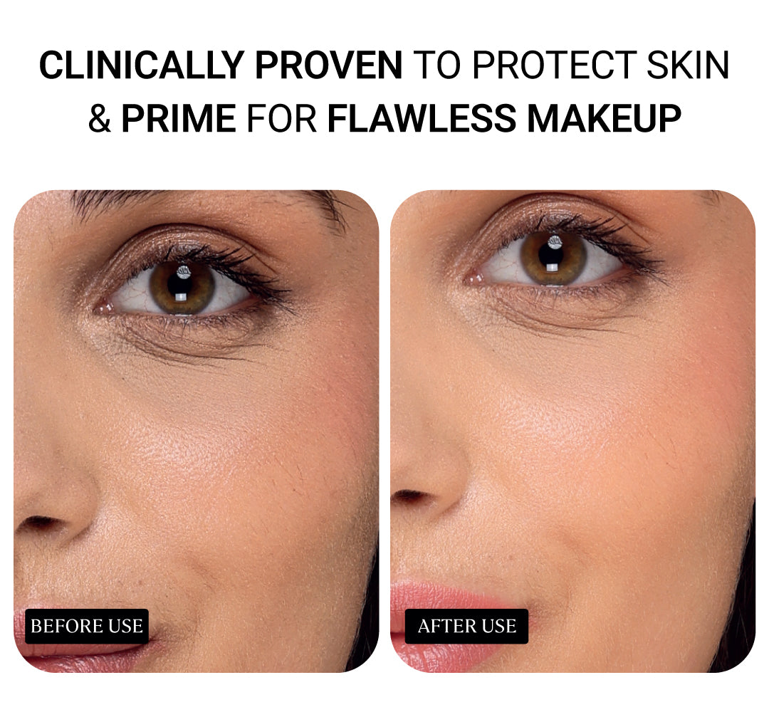 This featherlight formula blends effortlessly into your skin, providing broad-spectrum UVA, UVB, and blue light defense without any white cast. Designed to protect, prime and hydrate in one simple step, it creates the perfect smooth, dewy base for makeup, keeping your skin fresh and radiant all day.